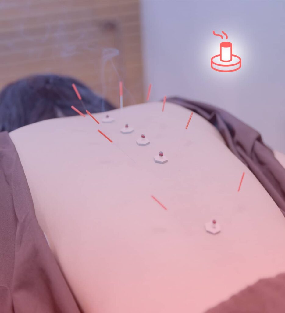 逆子に効果的とされるツボに対して、お灸を用いた逆子鍼灸を行います。